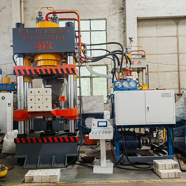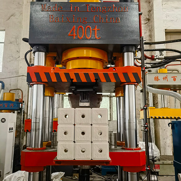 说明:本机为400吨牛羊盐砖机,四梁四柱液压机,用于牛羊盐块盐砖的压制成型,还可以用于桑拿浴盐盐块和其他粉末制品的压制成型。粉末液压机均为全自动送料装置,省事省力,节约能源,产量大效率高。